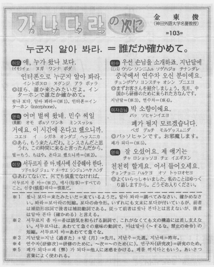 カナタラの次に -103- language X Facebook はてブ LINE Pinterest コピー 2026.02.15 ・1999年7月7日水曜日に金東俊氏から提供を受けたものです。無断転載禁止