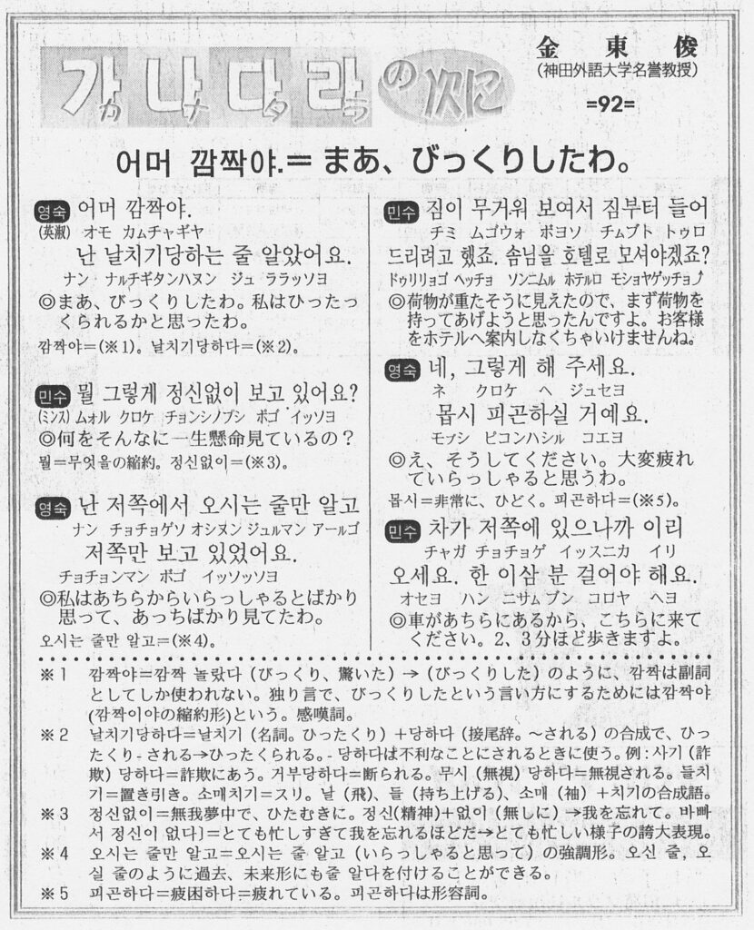 カナタラの次に -92- language X Facebook はてブ LINE Pinterest コピー 2026.02.01 ・1999年4月14日水曜日に金東俊氏から提供を受けたものです。無断転載禁止